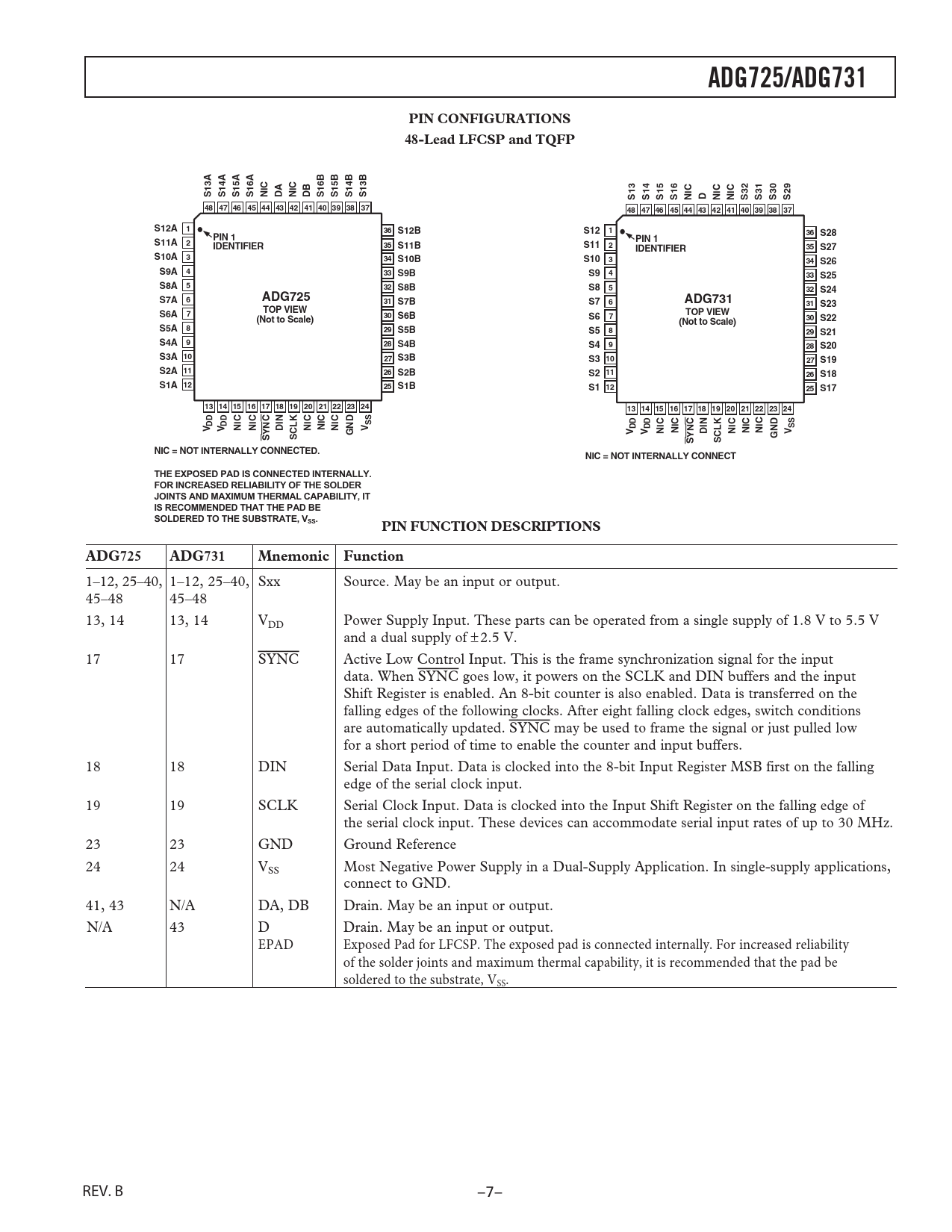 ADG725/ADG731 PIN CONFIGURATIONS 48-Lead LFCSP and TQFP S13A S14A S15A S16A S16B S15B S14B S13B S13 S14 S15 S16 S32 S31 S30 S29