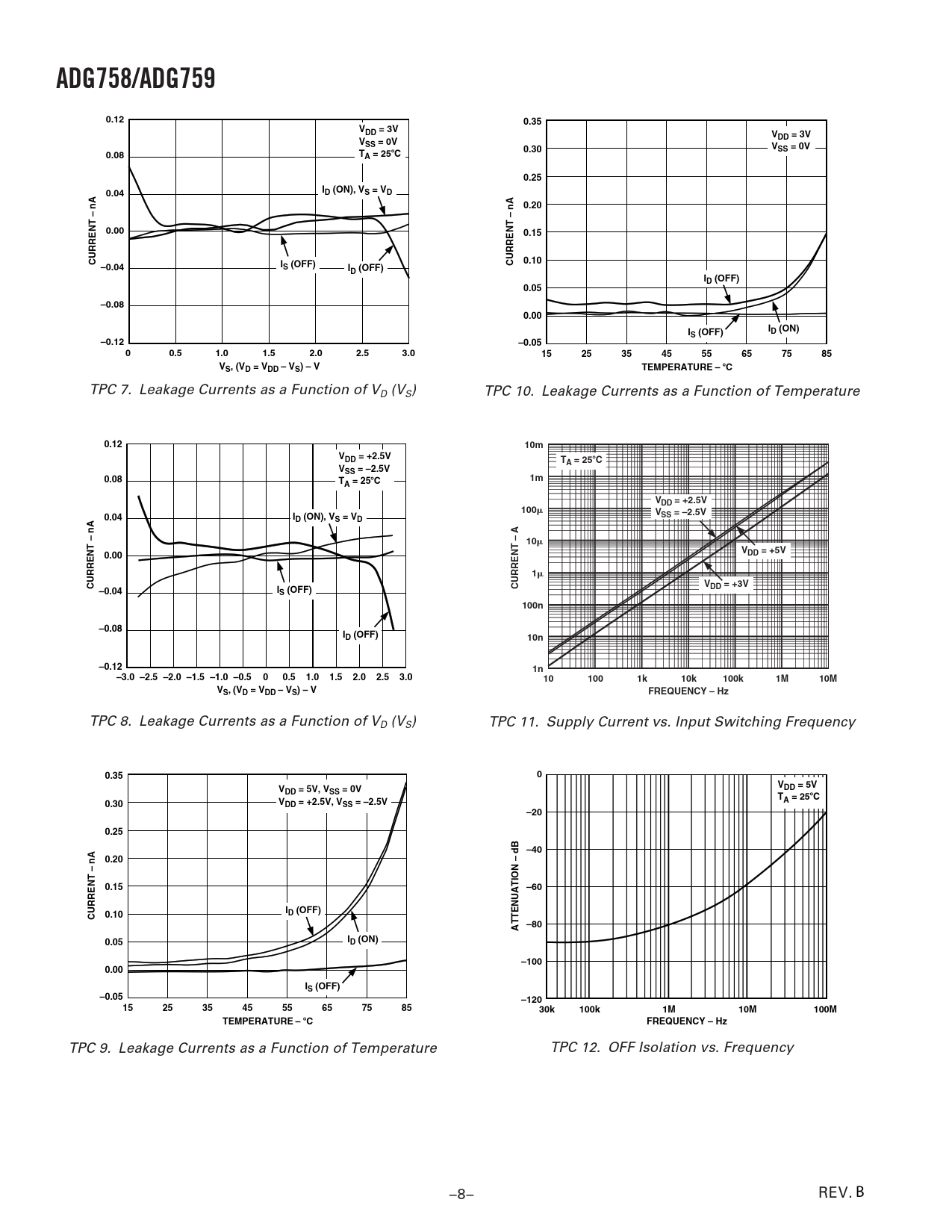TPC 9. Leakage Currents as a Function of Temperature TPC 12. OFF Isolation vs. Frequency –8– REV. B