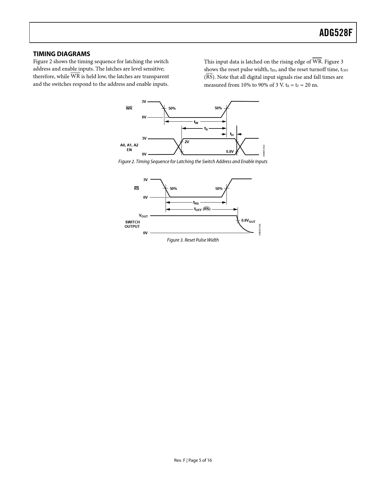 ADG528F TIMING DIAGRAMS 50% A0, A1, A2 0.8V tRS tOFF (RS) VOUT 0.8VOUT SWITCH OUTPUT