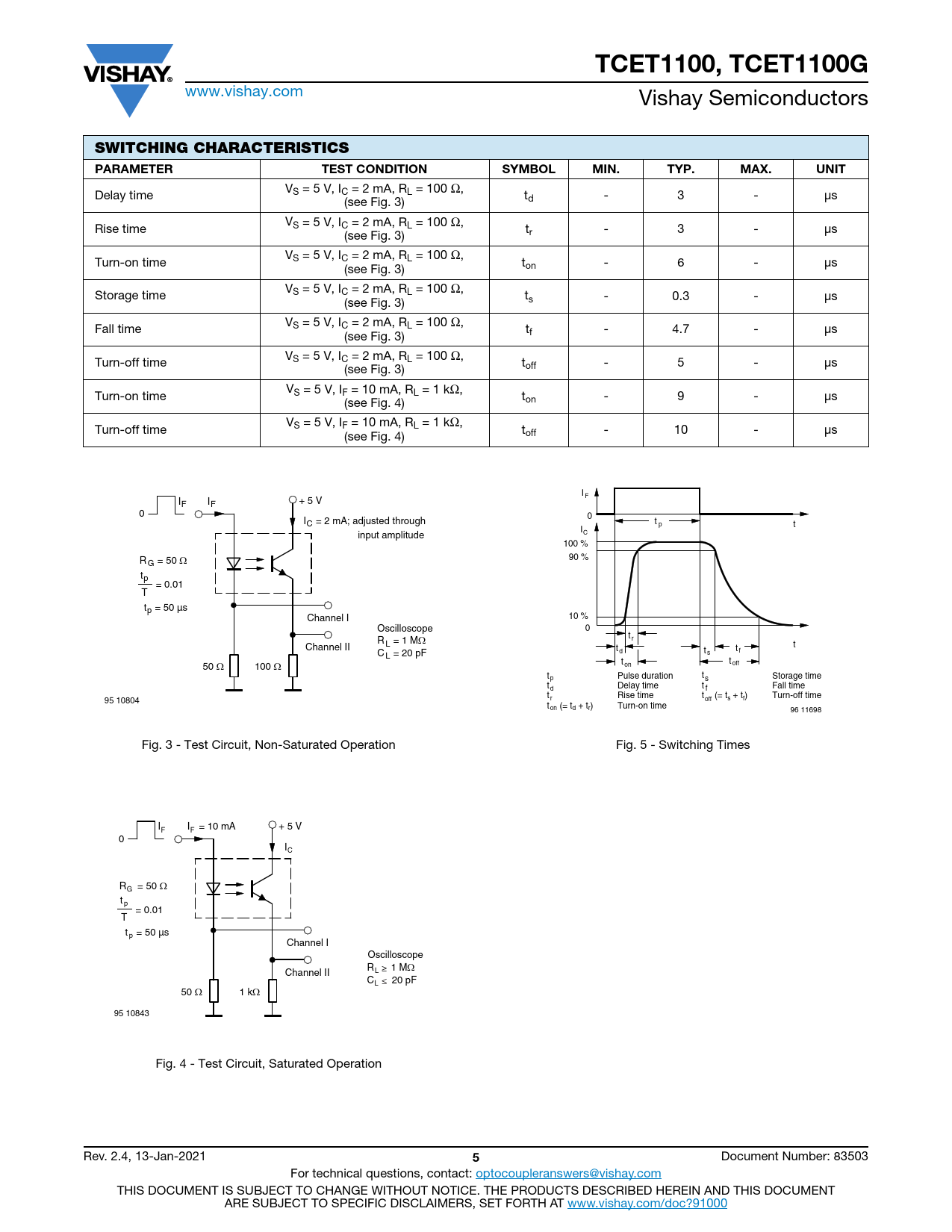 页数 / 页9 / 5 — TCET1100, TCET1100G. SWITCHING CHARACTERISTICS PARAMETER. TEST CONDITION. …