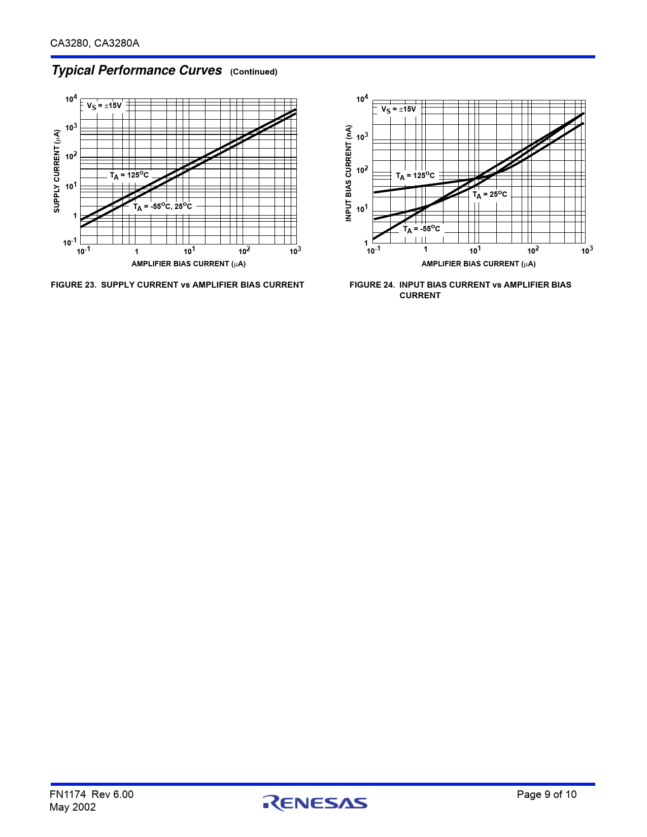 A) FIGURE 23. SUPPLY CURRENT vs AMPLIFIER BIAS CURRENT FIGURE 24. INPUT BIAS CURRENT vs AMPLIFIER BIAS CURRENT