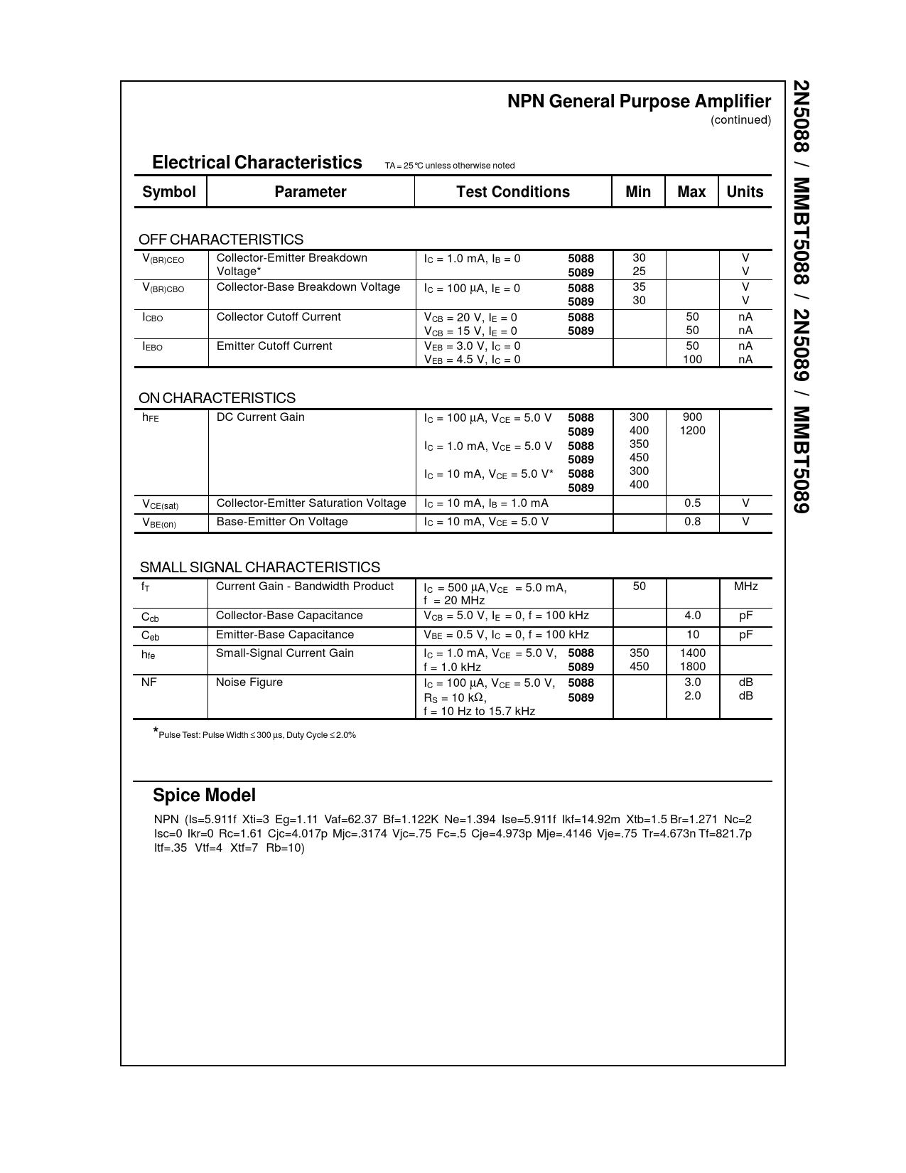 Datasheet 2N5088, 2N5089, MMBT5088, MMBT5089 (ON Semiconductor) - 3
