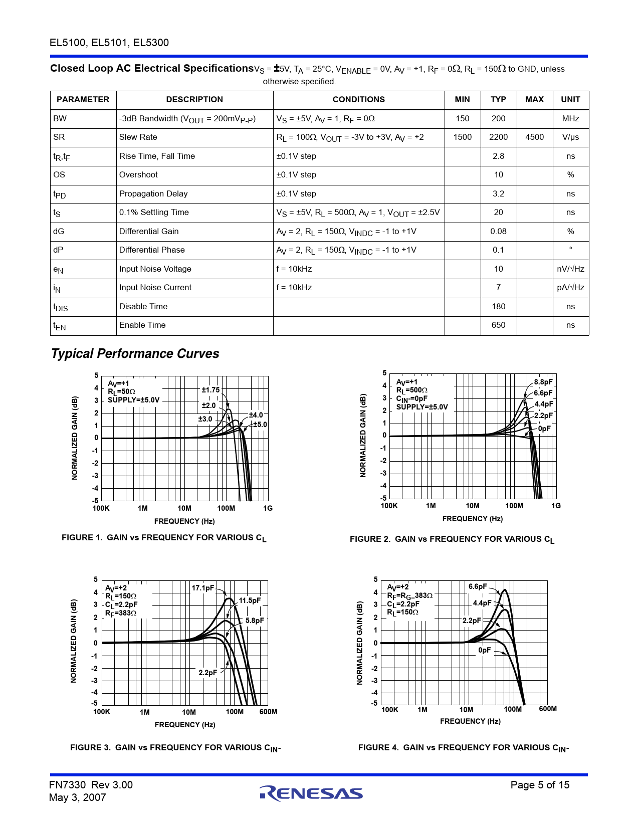 Datasheet EL5100, EL5101, EL5300 (Renesas) - 5
