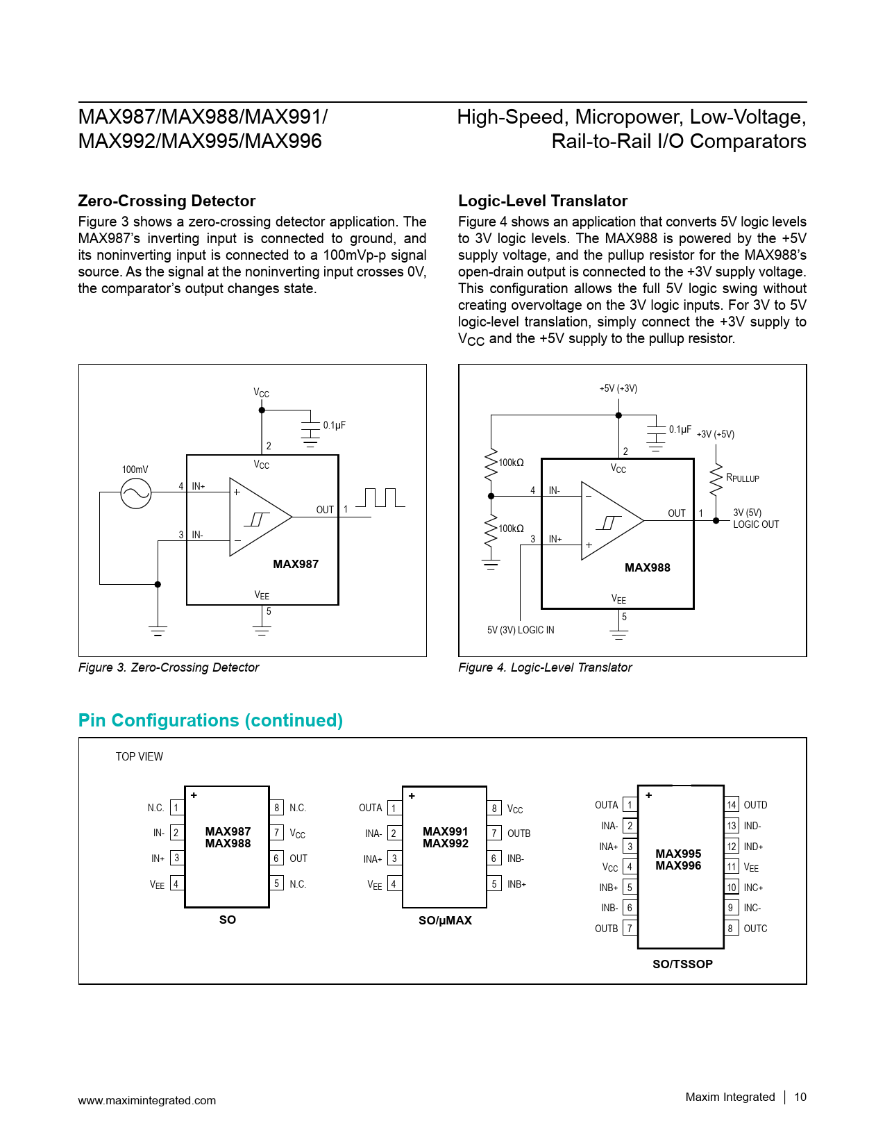 Zero-Crossing Detector. Logic-Level Translator. MAX987. MAX988. Pin Configurations (continued). MAX991. MAX992. MAX995. MAX996. SO/µMAX