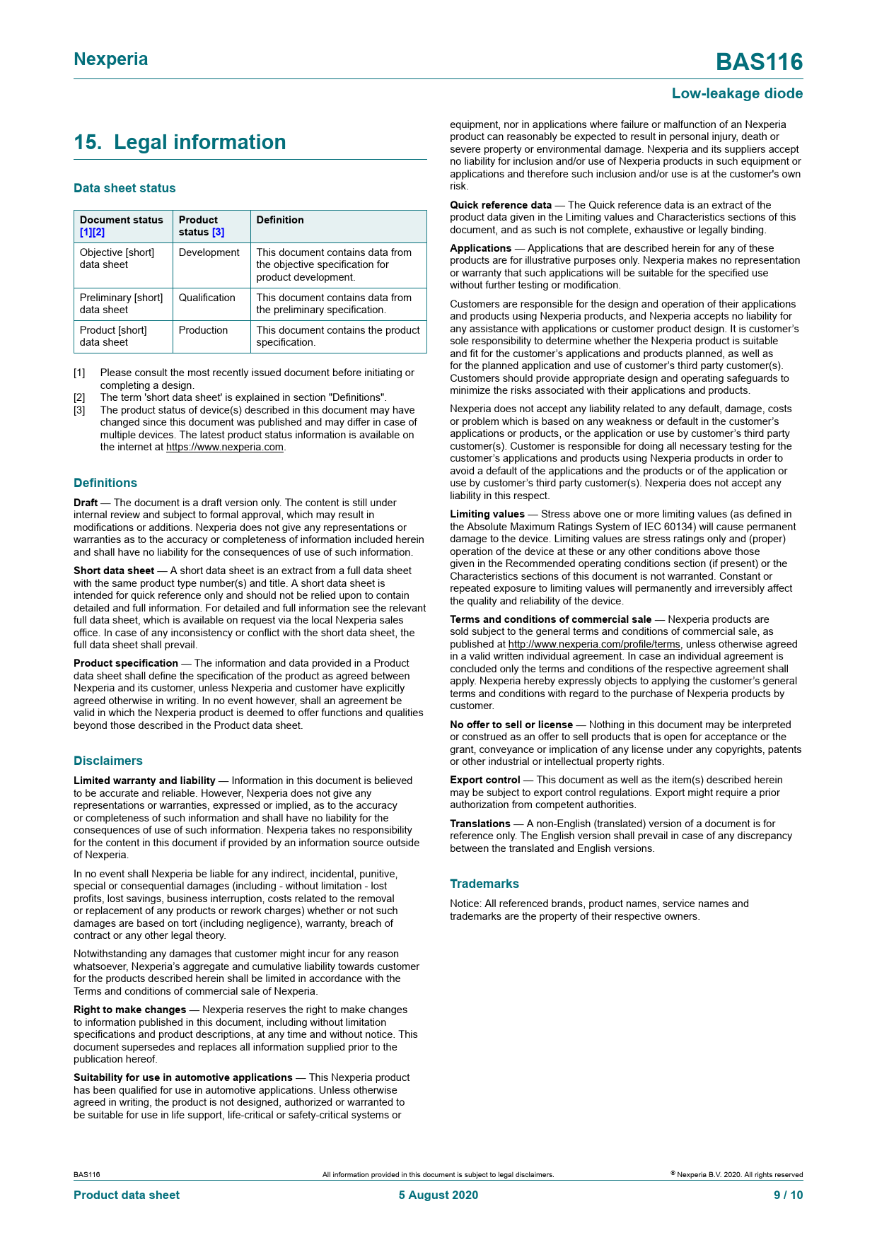 | 页数 / 页 | 10 / 9 — Nexperia. BAS116. Low-leakage diode. 15. Legal information. Data sheet … |