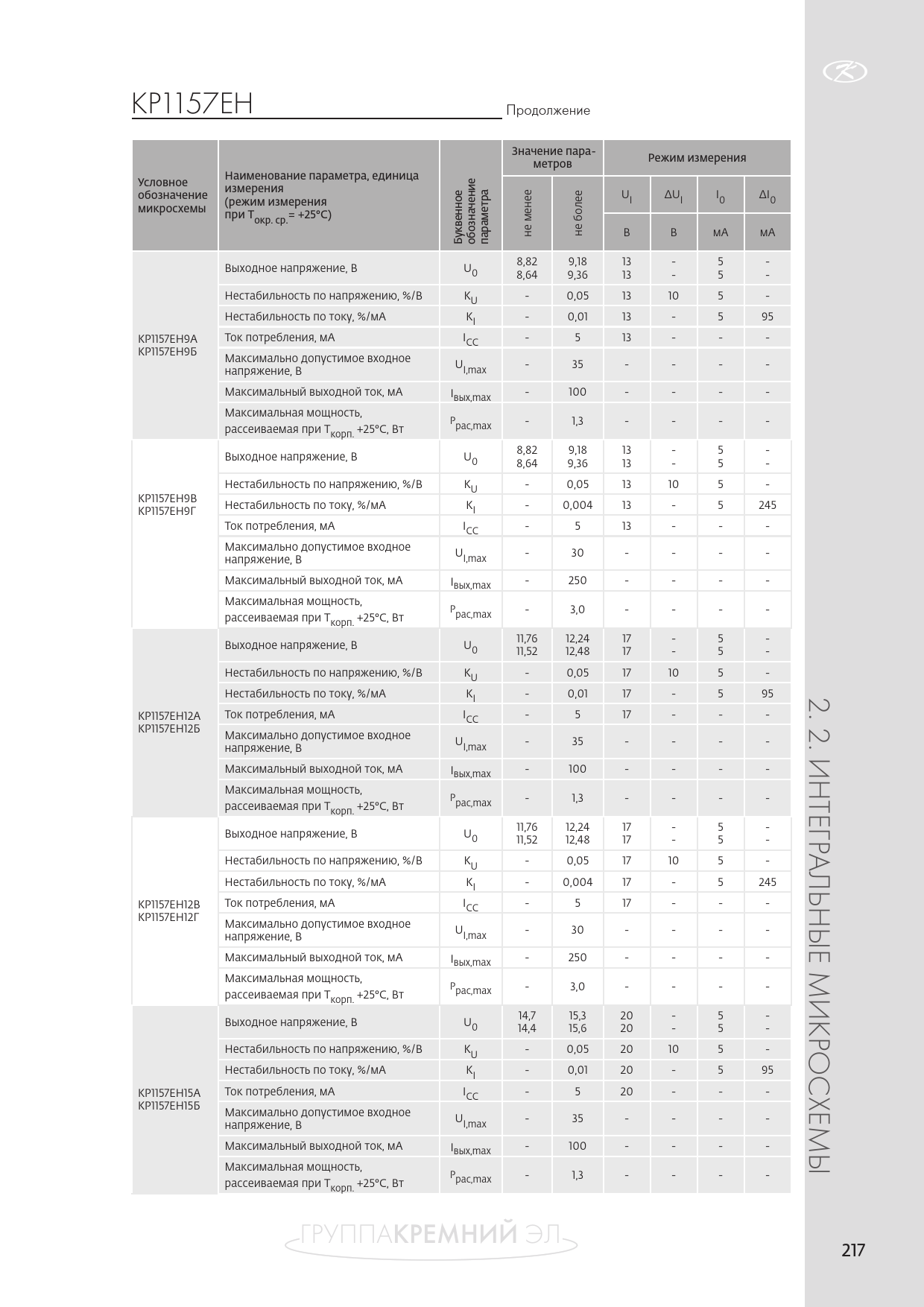 Кр1157ен. Продолжение. Значение. пара-. метров. Режим. измерения. Условное. Наименование. параметра,. единица. обозначение. измерения. UI. ΔUI. I0. ΔI0