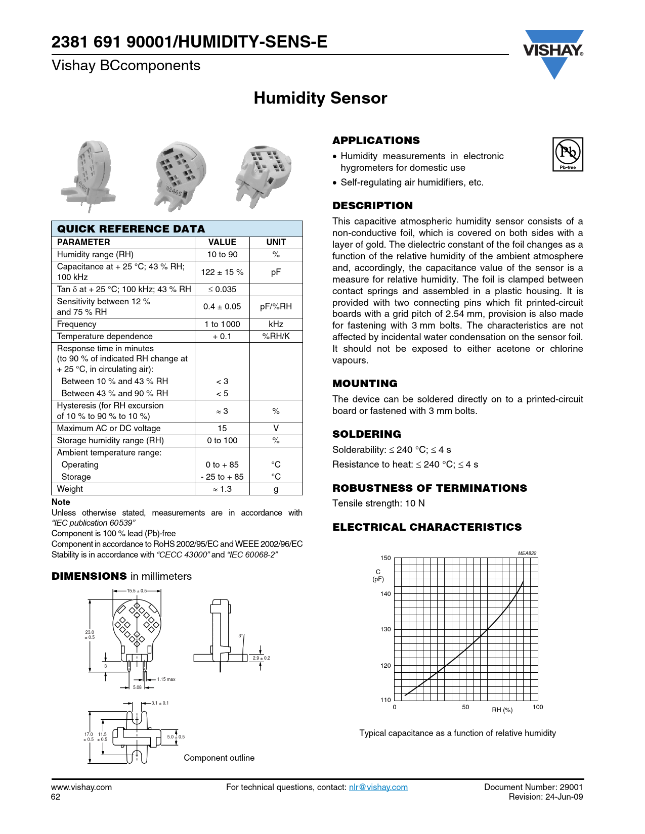 Datasheet 2381 691 90001/HUMIDITY-SENS-E Vishay