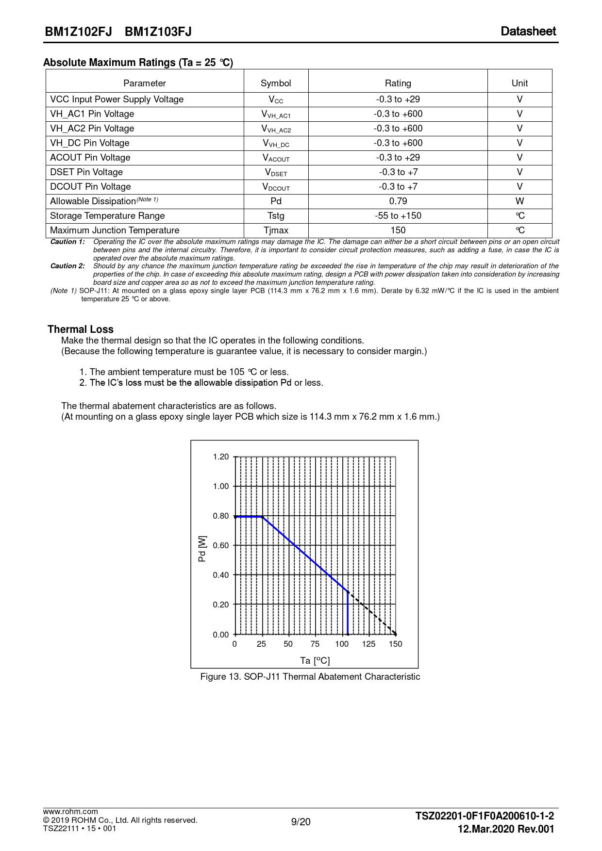 BM1Z102FJ BM1Z103FJ. Absolute Maximum Ratings (Ta = 25 °C). Caution 1:. Caution 2:. Thermal Loss. TSZ02201-0F1F0A200610-1-2