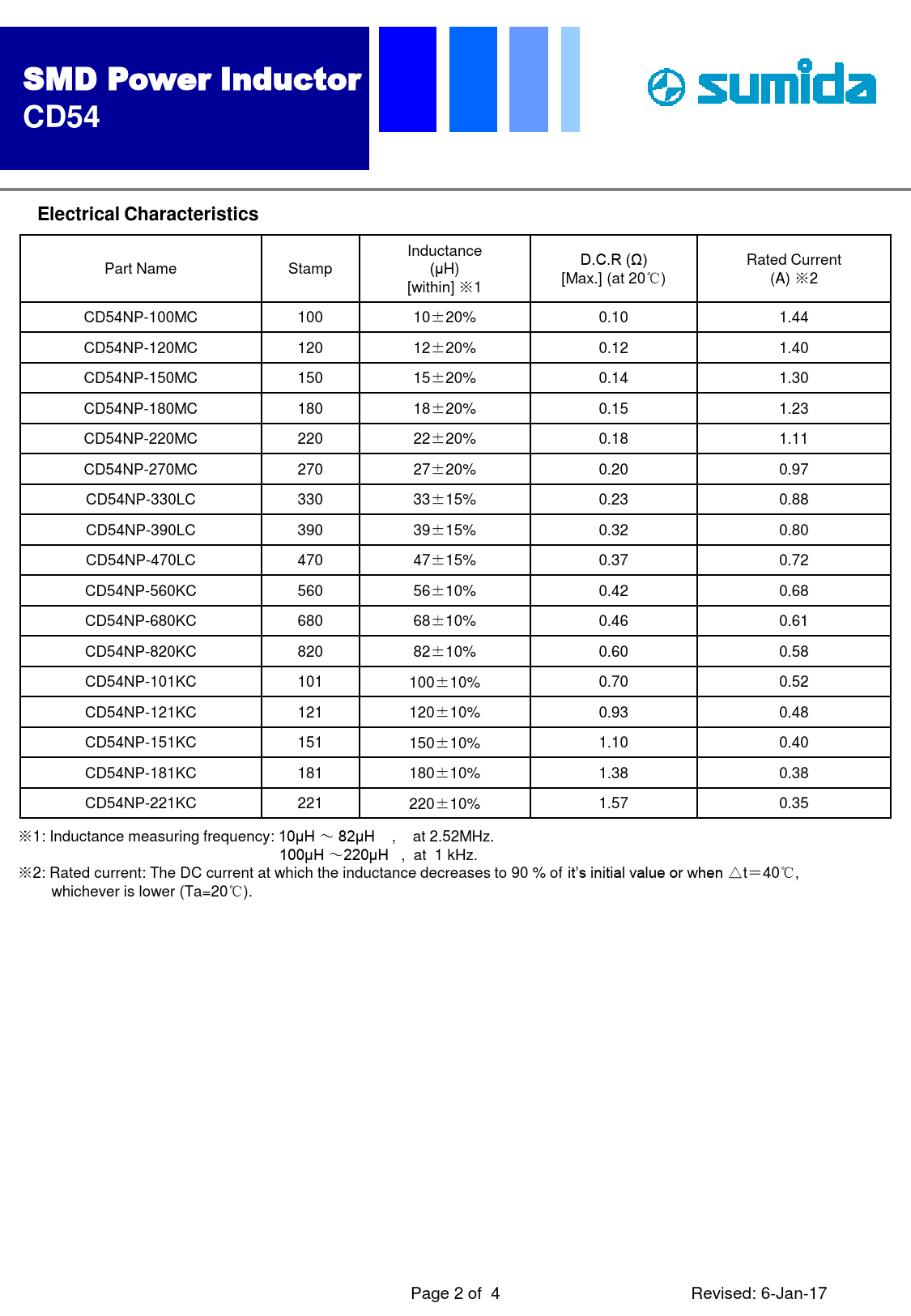 Datasheet CD54 (Sumida) - 2
