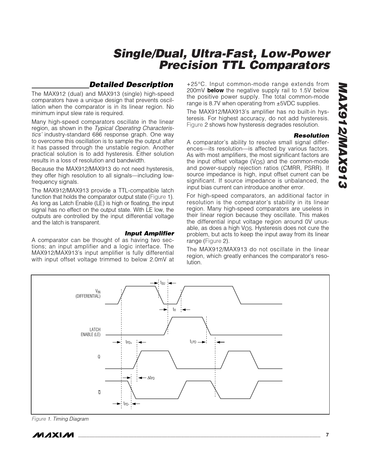 Single/Dual, Ultra-Fast, Low-Power Precision TTL Comparators MAX912/MAX913 Detailed Description below Resolution