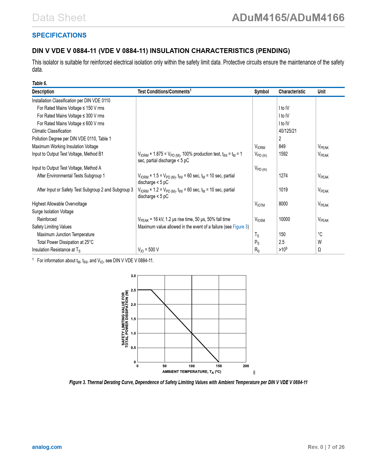 页数 / 页26 / 7 — ADuM4165/ADuM4166. SPECIFICATIONS. DIN V VDE V 0884-11 (VDE V 0884-11) …
