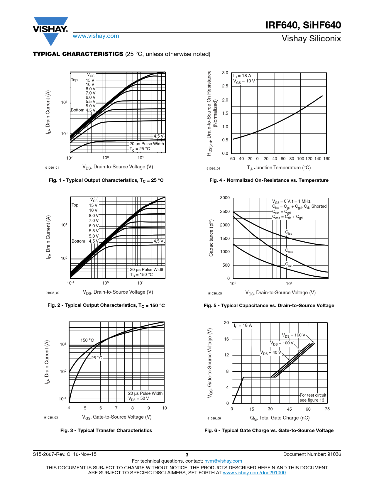 IRF640, SiHF640. TYPICAL CHARACTERISTICS. Fig. 1 - Typical Output Characteristics, TC = 25 °C