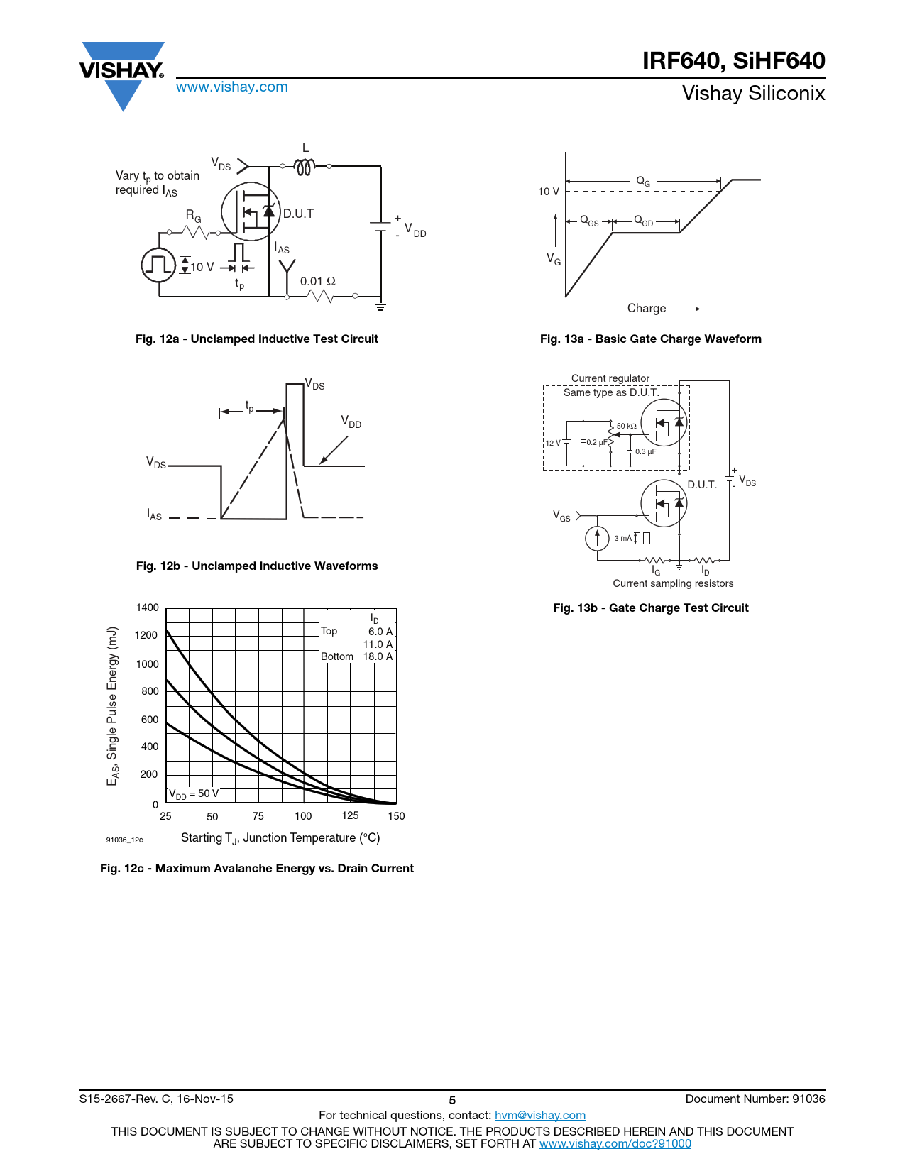 IRF640, SiHF640. Fig. 12a - Unclamped Inductive Test Circuit. Fig. 13a - Basic Gate Charge Waveform