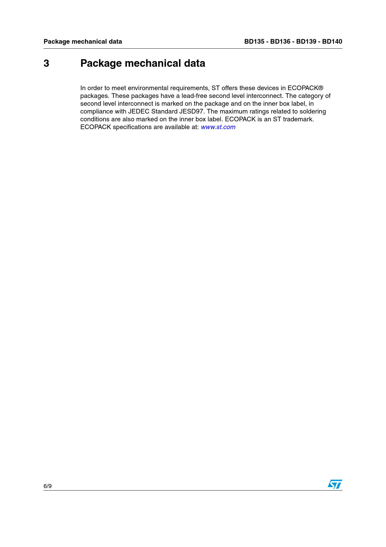 页数 / 页9 / 6 — Package mechanical data. BD135 - BD136 - BD139 - BD140