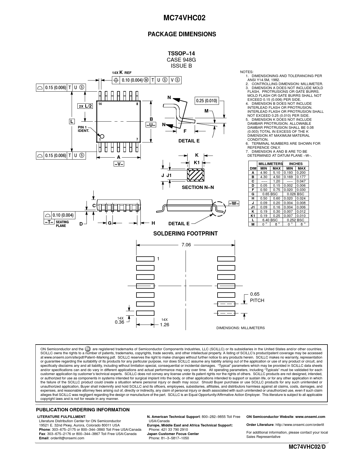 MC74VHC02. PACKAGE DIMENSIONS. TSSOP−14. 14X REF. 2X L/2. −U−. PIN 1. IDENT. DETAIL E. −V−. MILLIMETERS. INCHES. DIM. MIN. MAX. J J1. SECTION N−N. −W−