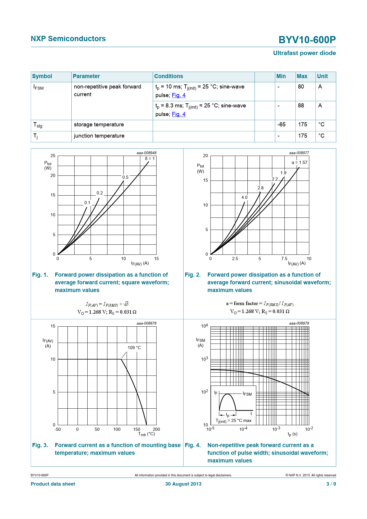 | 页数 / 页 | 9 / 3 — NXP Semiconductors. BYV10-600P. Ultrafast power diode. Symbol. Parameter. … |