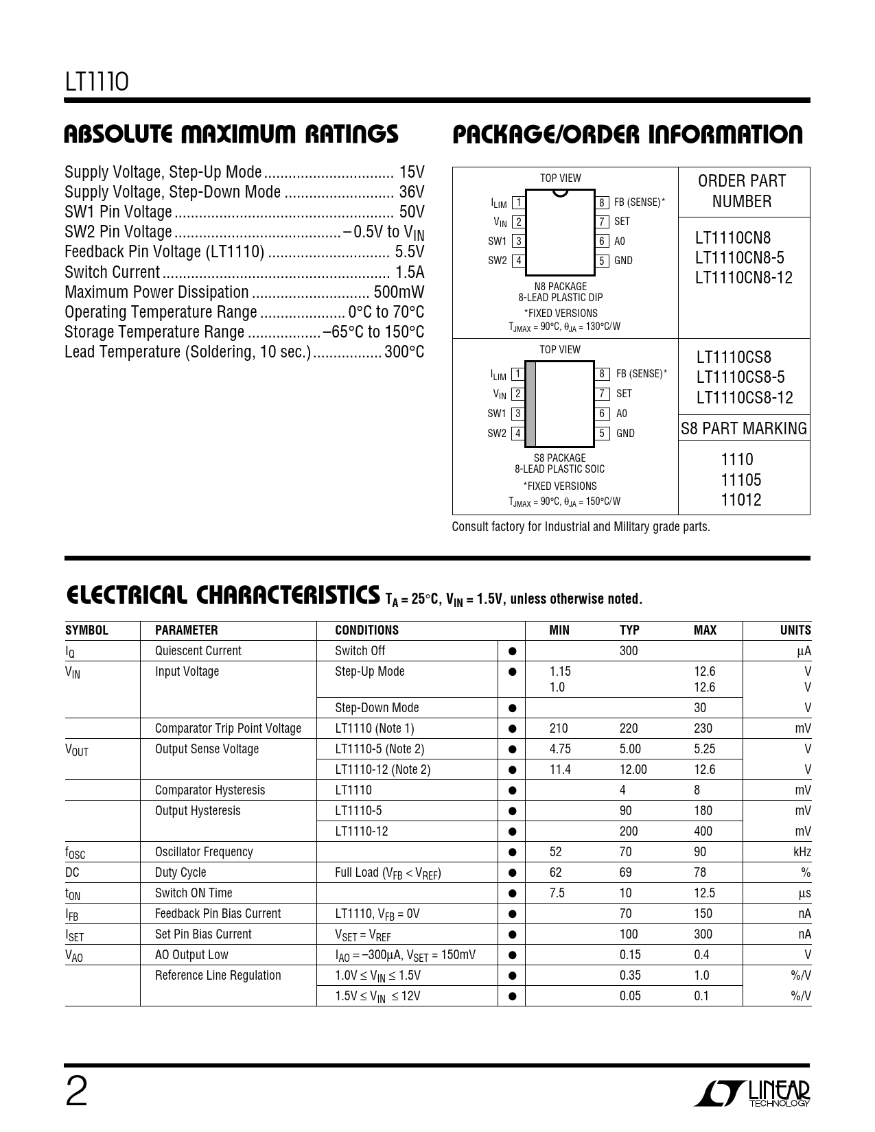 Datasheet LT1110 (Linear Technology) - 2