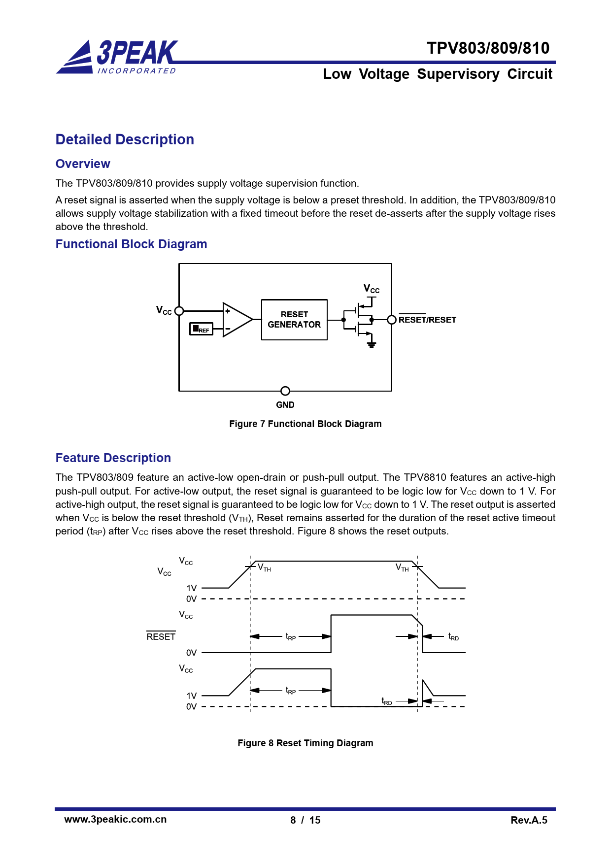 页数 / 页15 / 8 — TPV803/809/810. Low Voltage Supervisory Circuit. Detailed Description. …