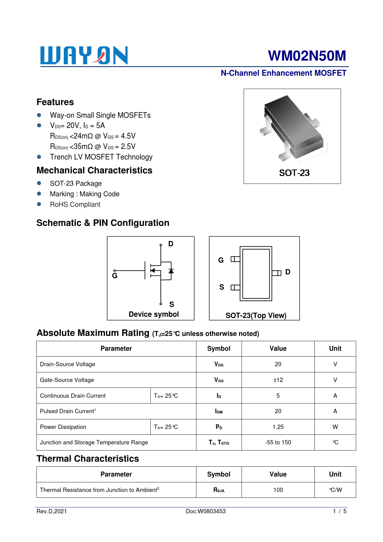 | 页数 / 页 | 5 / 1 — WM02N50M. N-Channel Enhancement MOSFET. Features. Mechanical … |