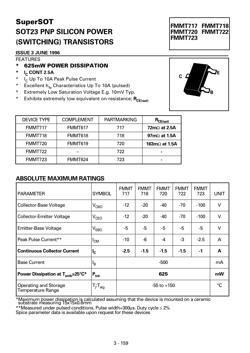 Datasheet FMMT717, FMMT718, FMMT720, FMMT722, FMMT723 (Diodes)