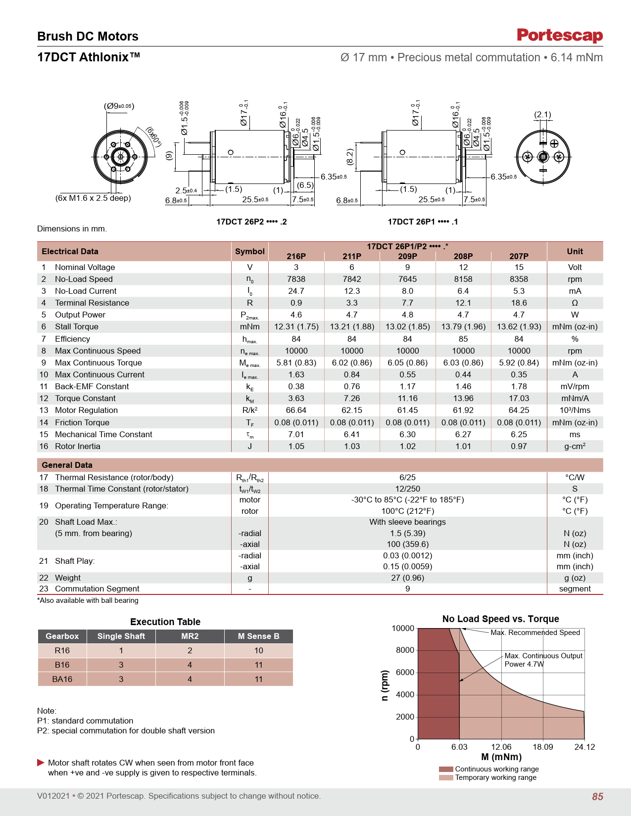 Brush DC Motors 17DCT Athlonix™. 17DCT 26P2 •••• .2. 17DCT 26P1 •••• .1. Electrical Data. Symbol. 17DCT 26P1/P2 •••• .*. Unit. 216P