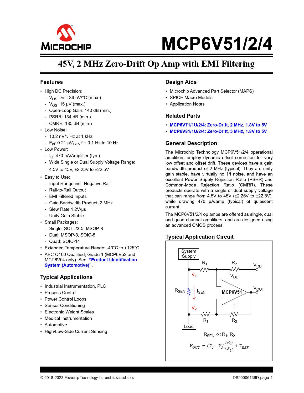 Datasheet MCP6V51, MCP6V52, MCP6V54 (Microchip)