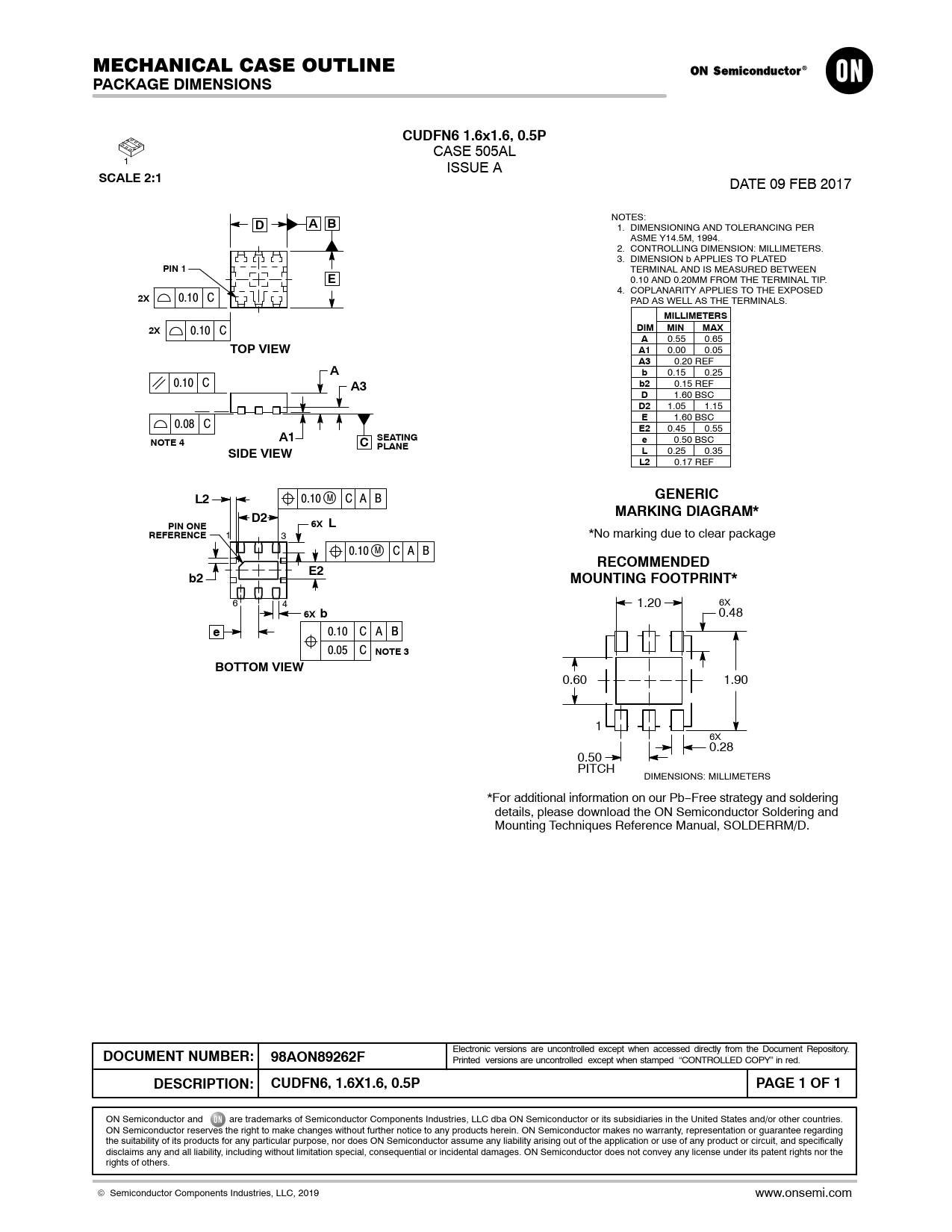 DESCRIPTION: CUDFN6, 1.6X1.6, 0.5P PAGE 1 OF 1