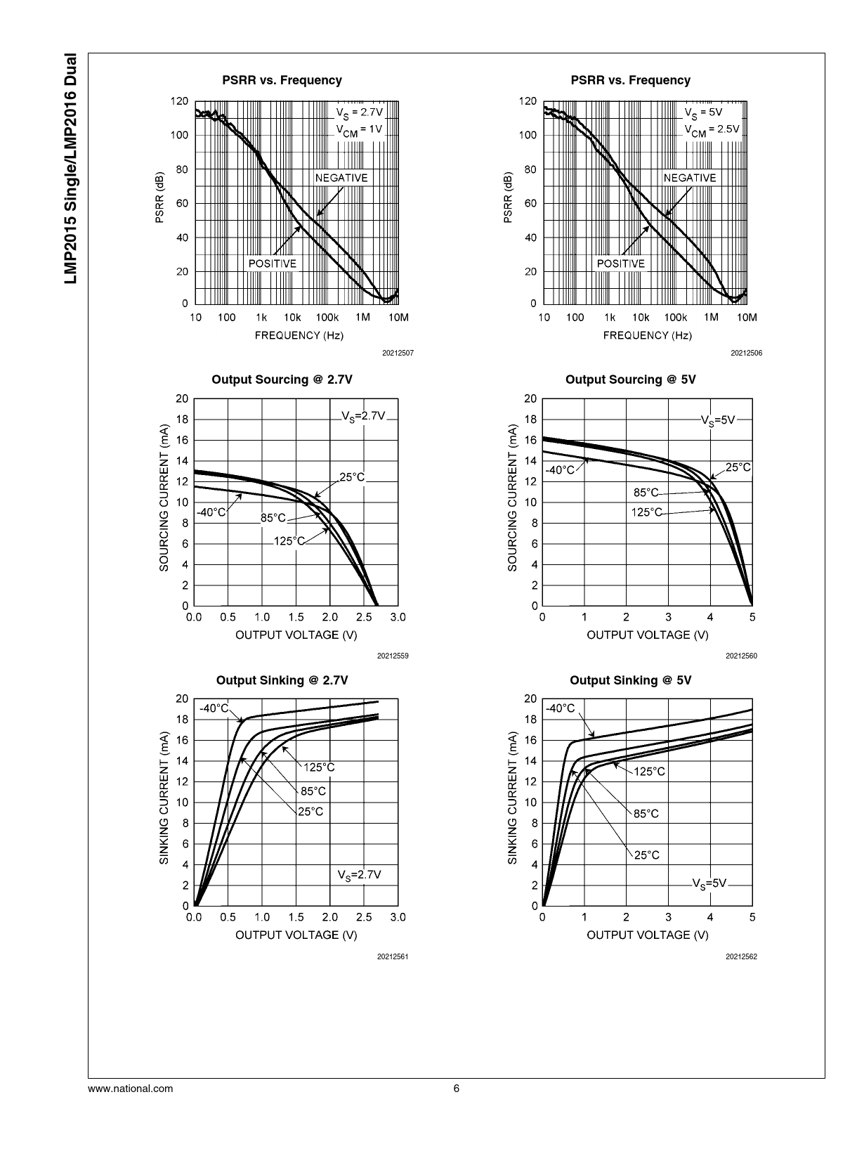 | 页数 / 页 | 16 / 6 — PSRR vs. Frequency. LMP2015 Single/LMP2016 Dual. Output Sourcing @ 2.7V. … |