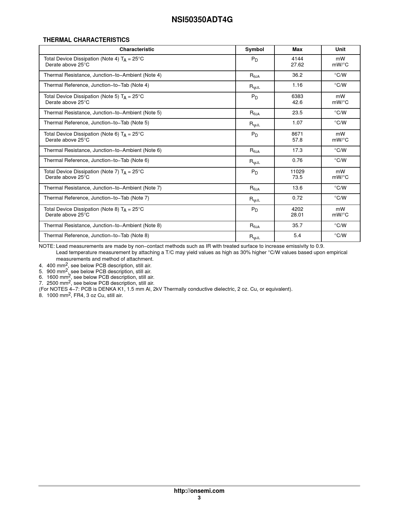 NSI50350ADT4G THERMAL CHARACTERISTICS Characteristic Symbol Max Unit http://onsemi.com