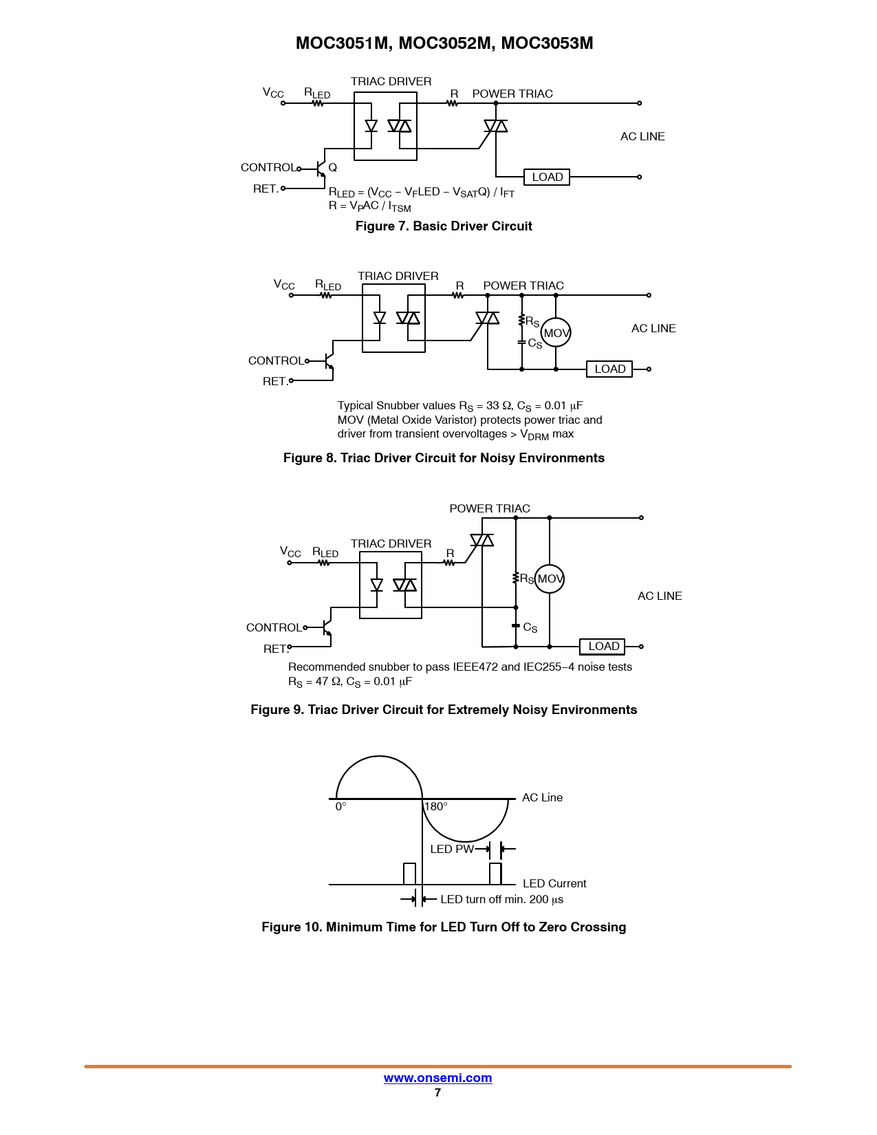 MOC3051M, MOC3052M, MOC3053M. Figure 7. Basic Driver Circuit. Figure 8. Triac Driver Circuit for Noisy Environments