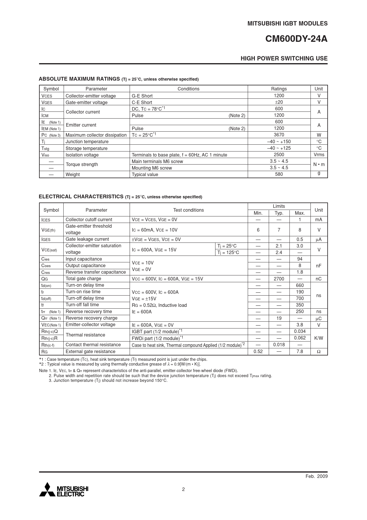 Datasheet CM600DY-24A (Mitsubishi Electric) - 2