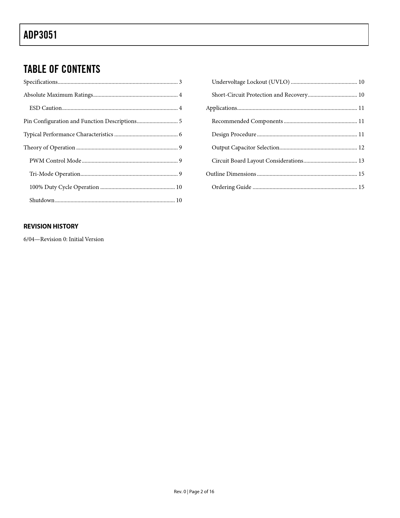 ADP3051 TABLE OF CONTENTS REVISION HISTORY