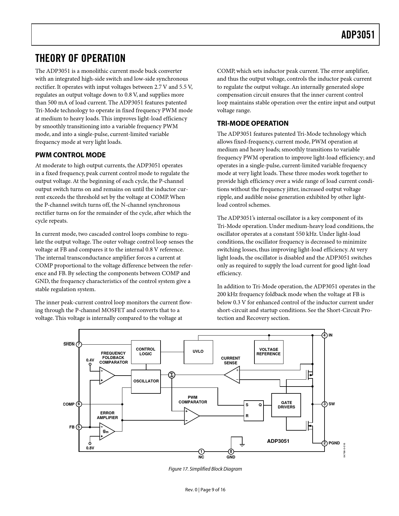 页数 / 页16 / 9 — ADP3051. THEORY OF OPERATION. TRI-MODE OPERATION. PWM CONTROL MODE. 4 IN. …