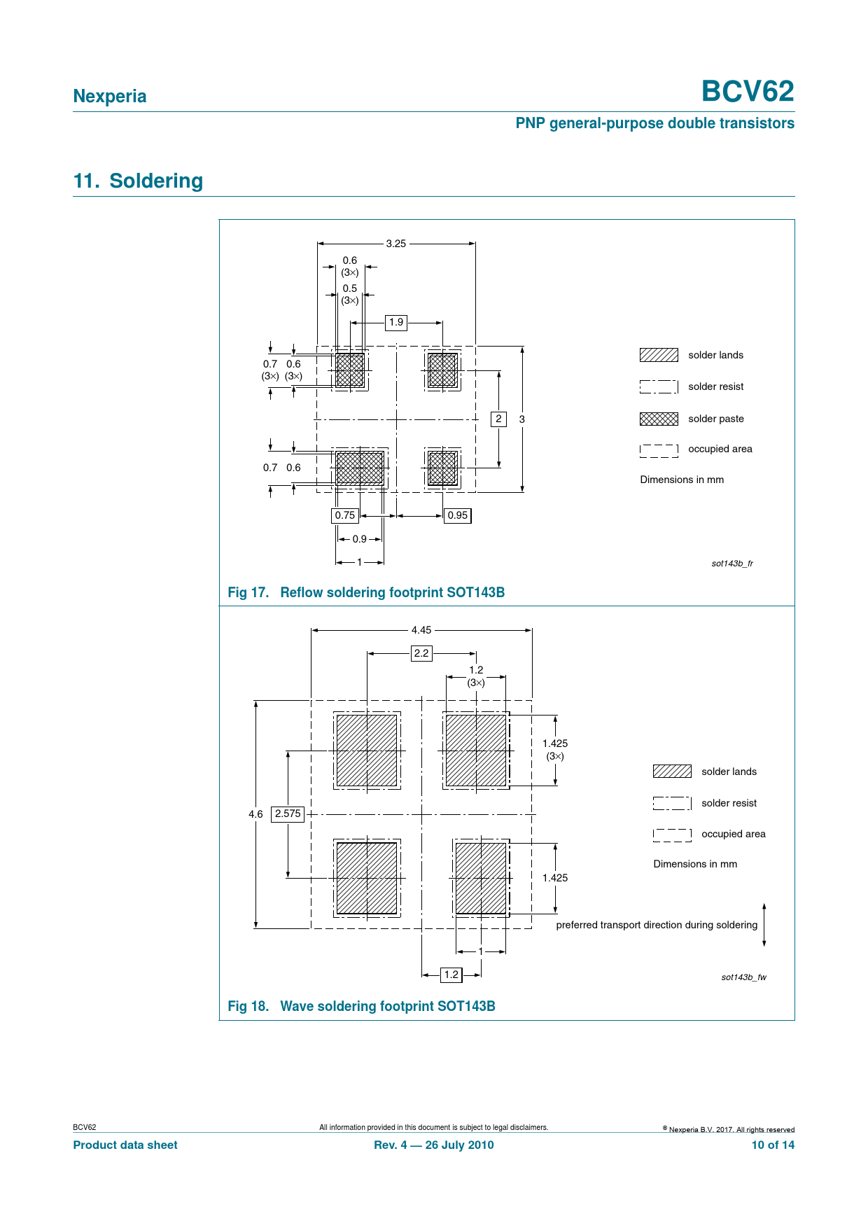 | 页数 / 页 | 14 / 10 — Nexperia. BCV62. PNP general-purpose double transistors. 11. Soldering. … |