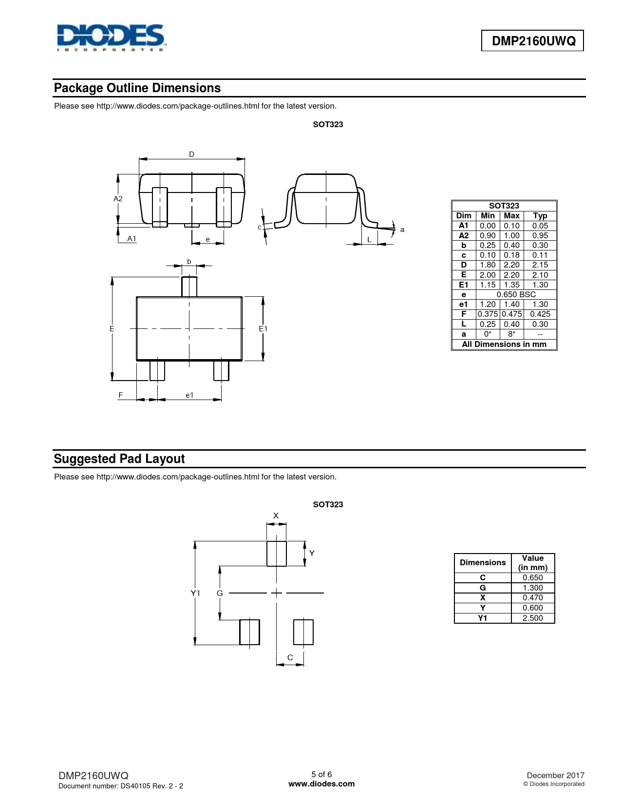 DMP2160UWQ. Package Outline Dimensions. SOT323. Dim Min Max. Typ. All Dimensions in mm. Suggested Pad Layout. Value. Dimensions. (in mm)