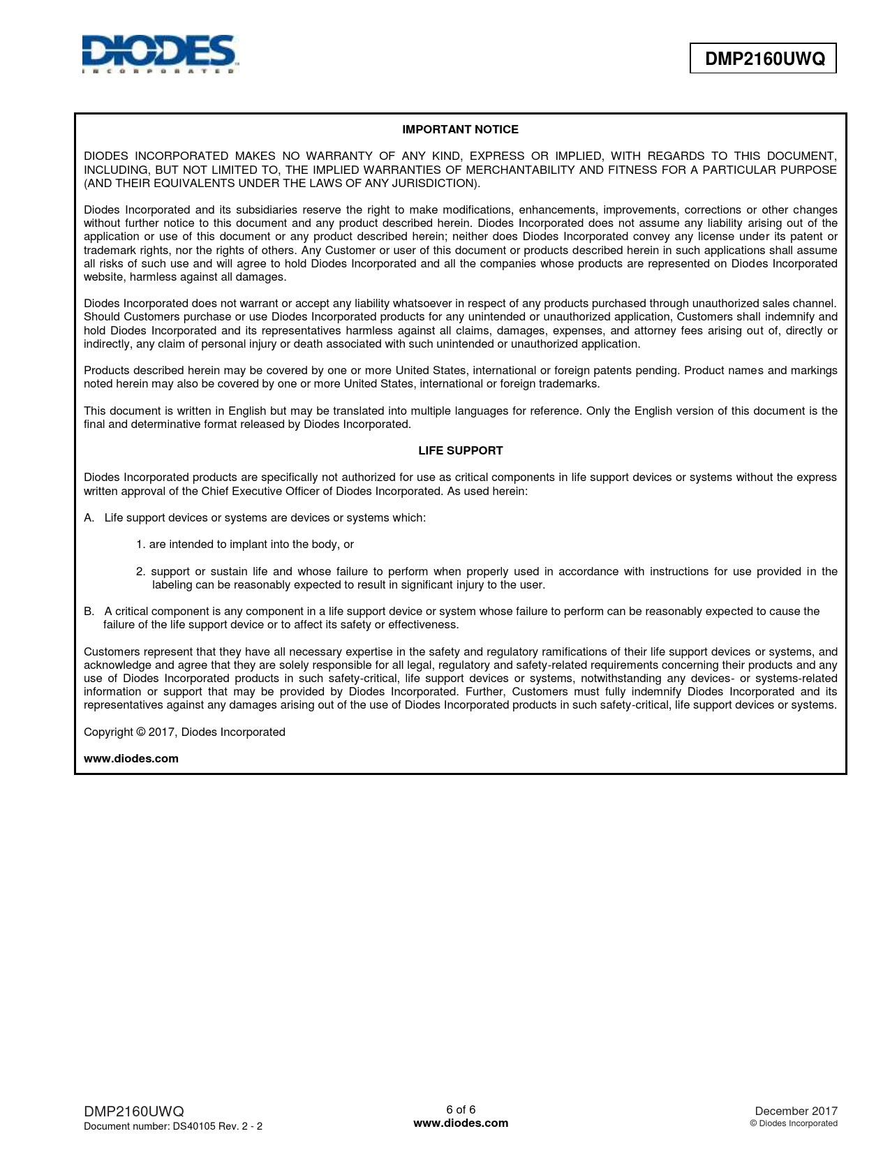 | 页数 / 页 | 6 / 6 — DMP2160UWQ. IMPORTANT NOTICE. LIFE SUPPORT. www.diodes.com |