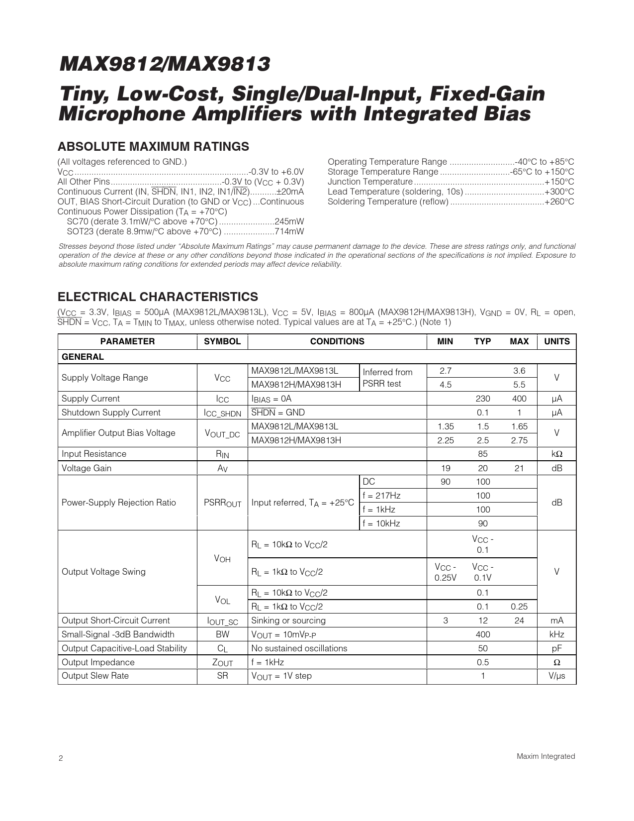 Datasheet MAX9812, MAX9813 (Maxim) - 2