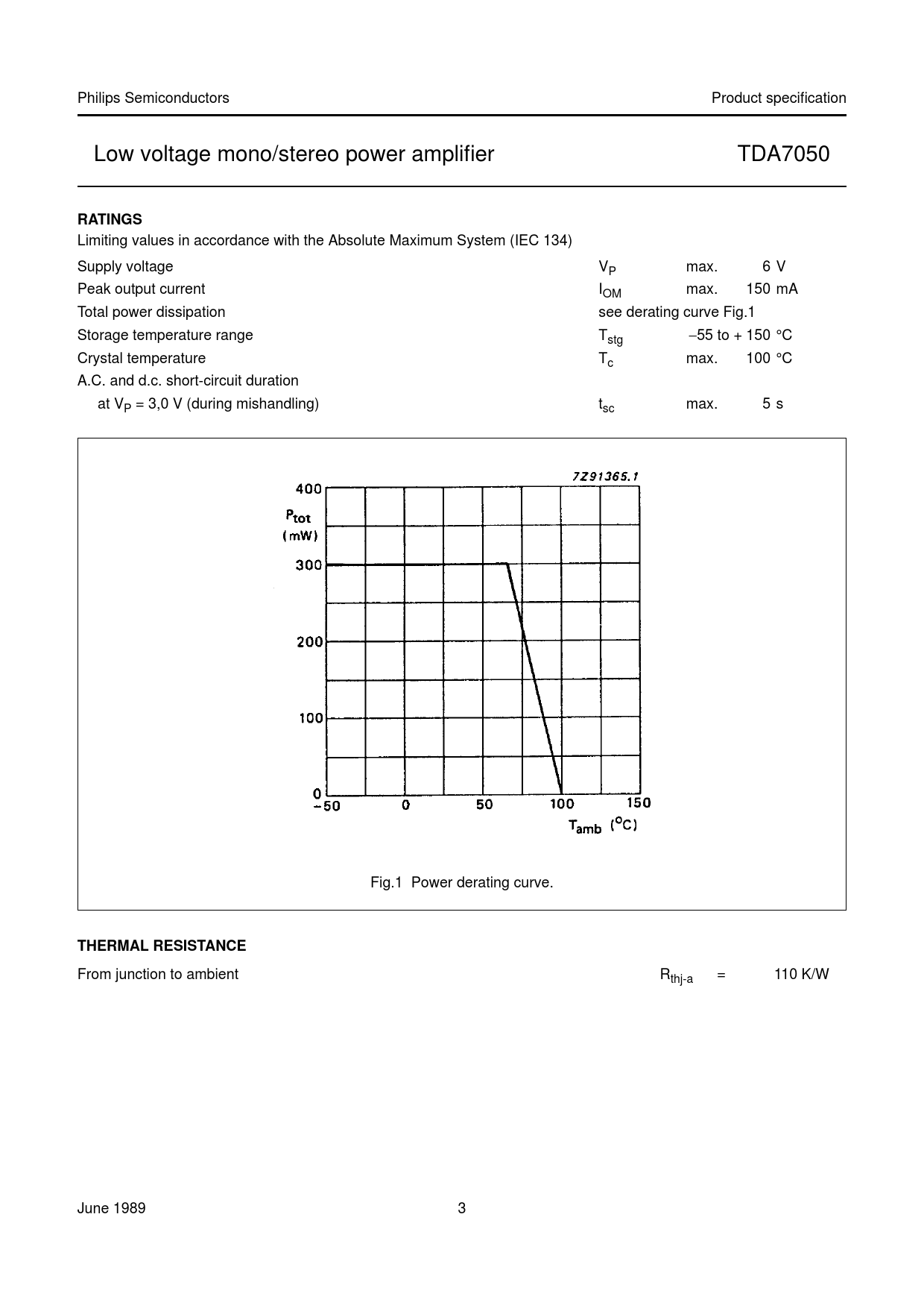 Philips Semiconductors Product specification Low voltage mono/stereo power amplifier TDA7050