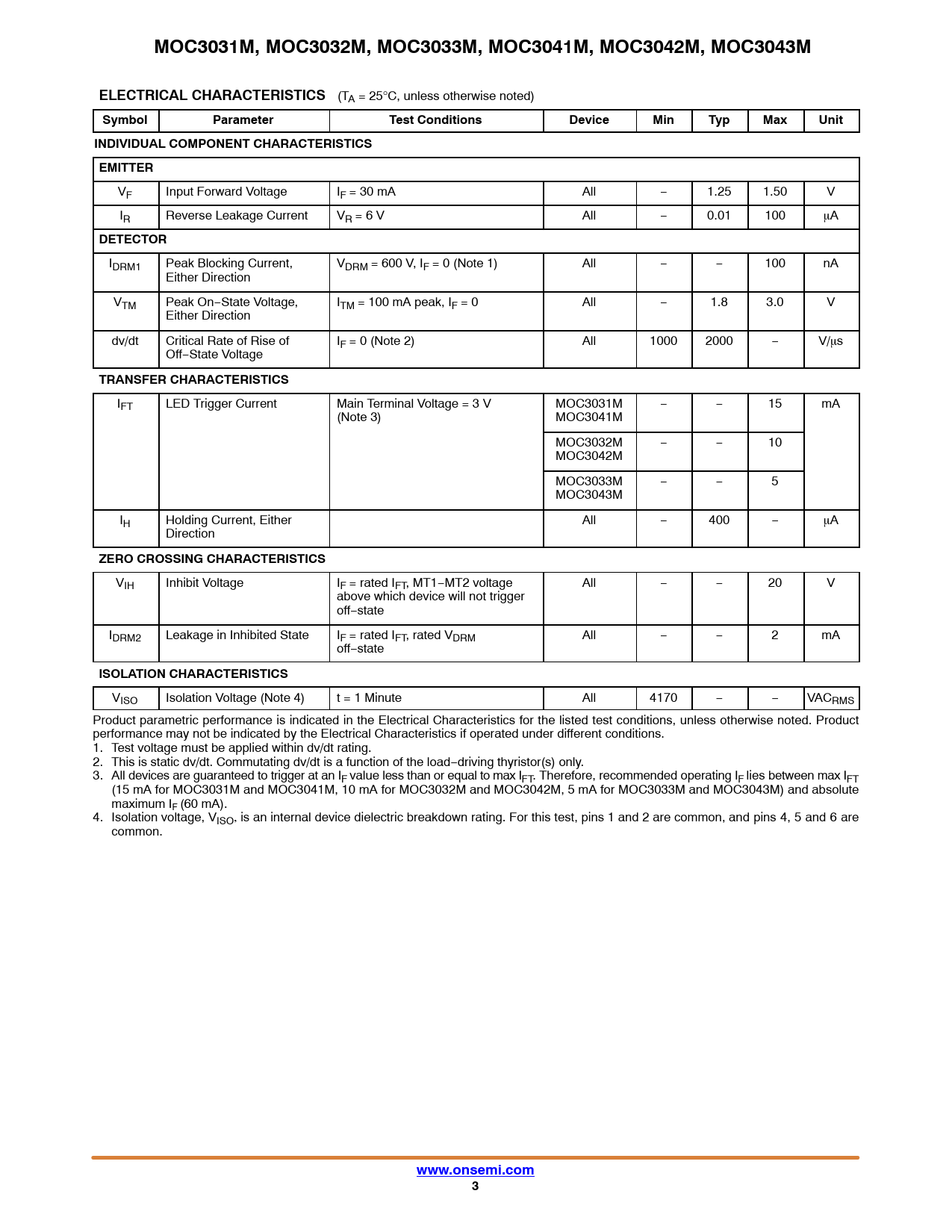 MOC3031M, MOC3032M, MOC3033M, MOC3041M, MOC3042M, MOC3043M ELECTRICAL CHARACTERISTICS