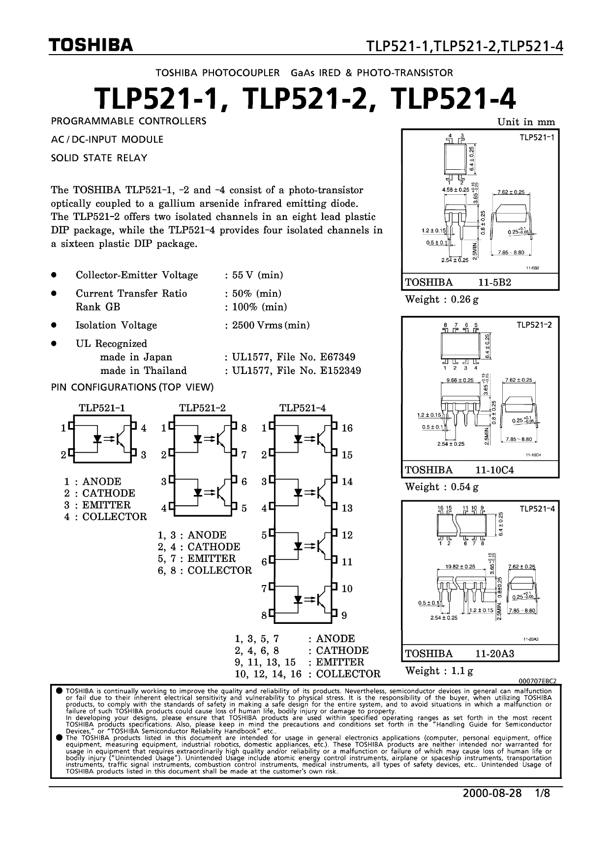 Datasheet TLP521-1, TLP521-2, TLP521-4 (Toshiba)