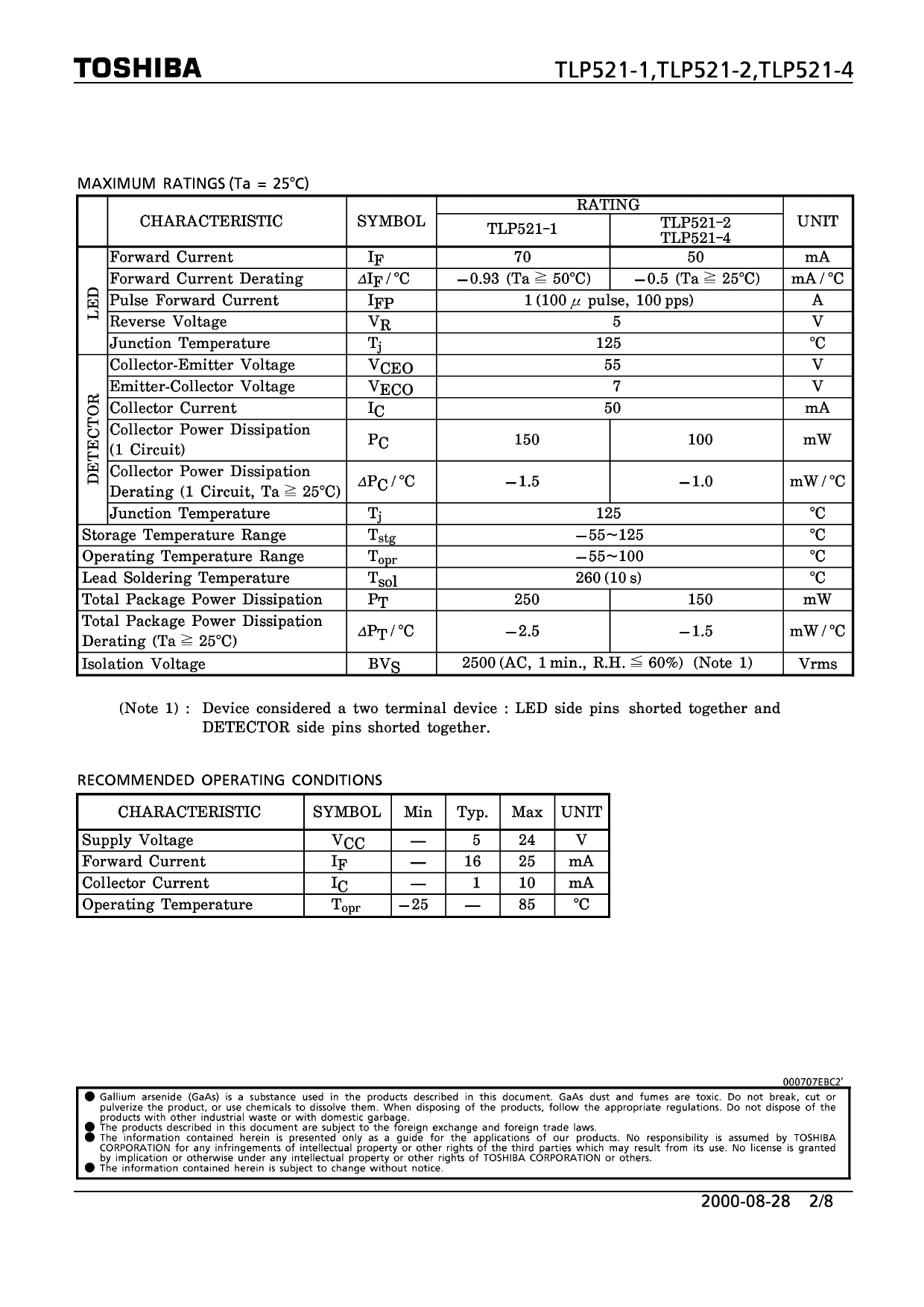 Datasheet TLP521-1, TLP521-2, TLP521-4 (Toshiba) - 2