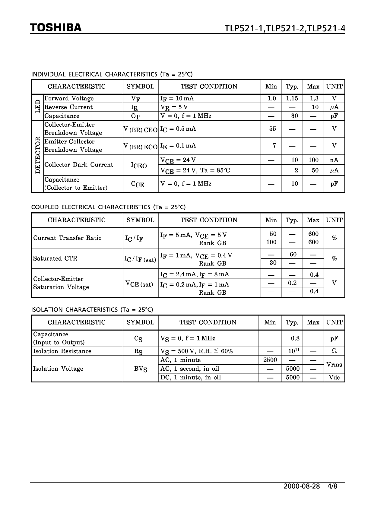 Datasheet TLP521-1, TLP521-2, TLP521-4 (Toshiba) - 4