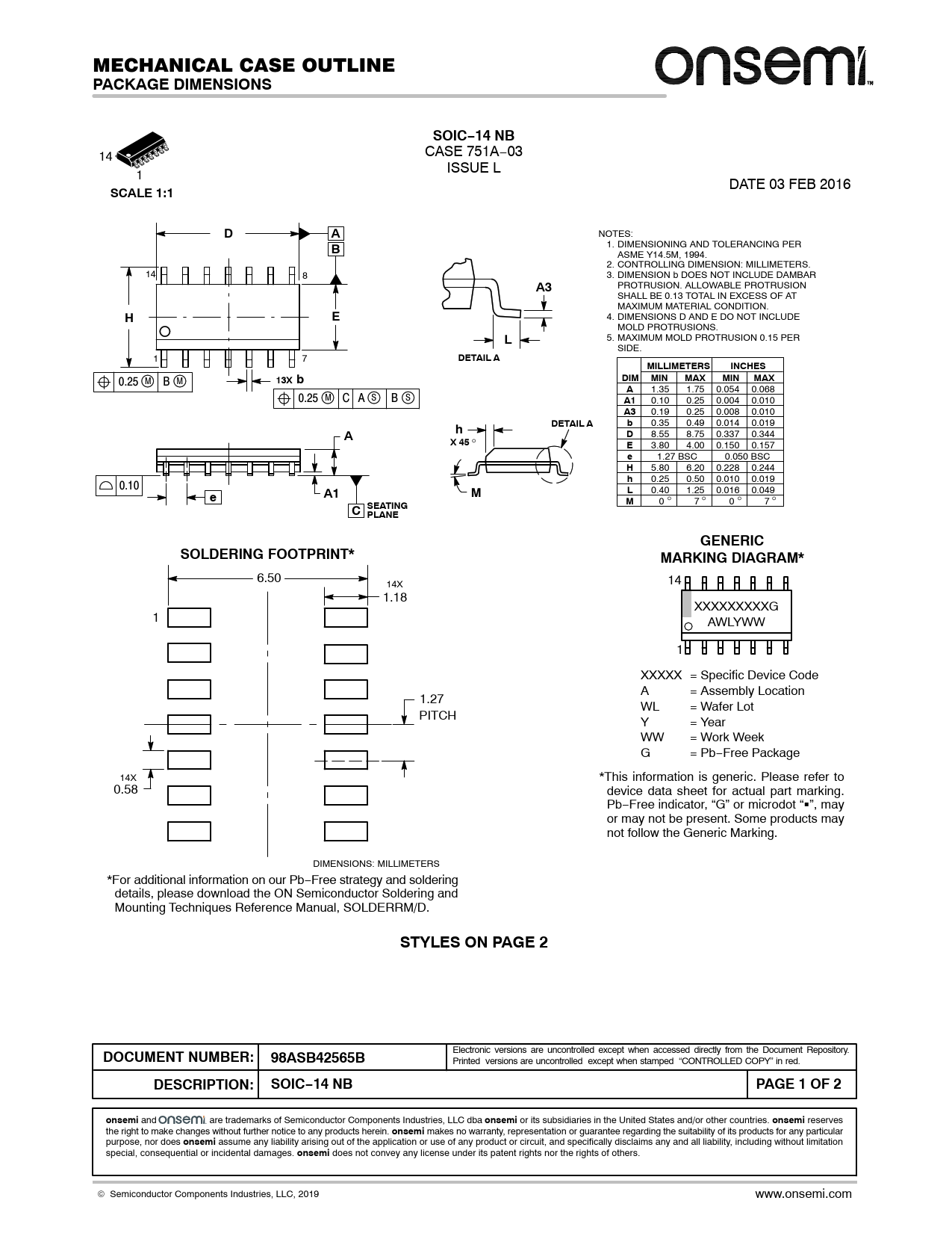 DESCRIPTION: SOIC−14 NB PAGE 1 OF 2 onsemi