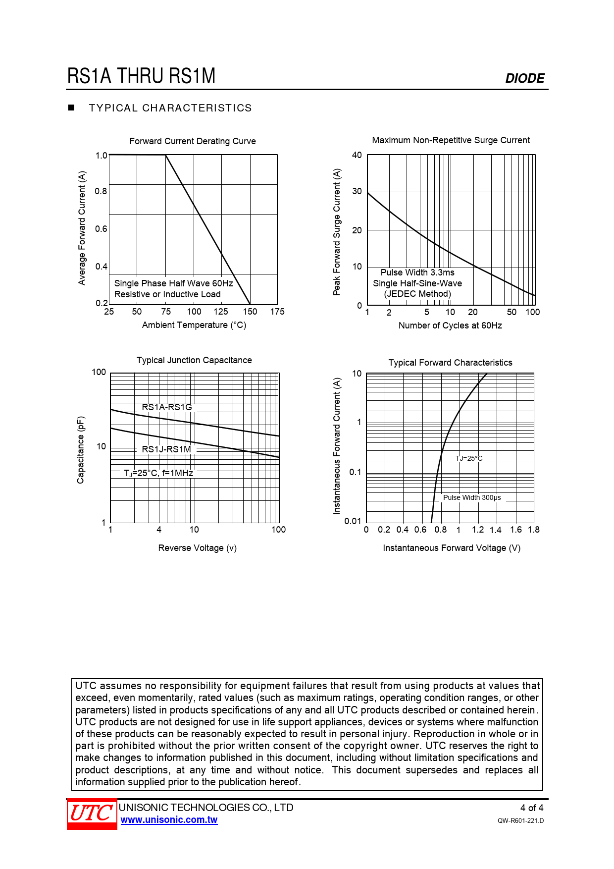 页数 / 页4 / 4 — RS1A THRU RS1M. DIODE. TYPICAL CHARACTERISTICS. UNISONIC TECHNOLOGIES …