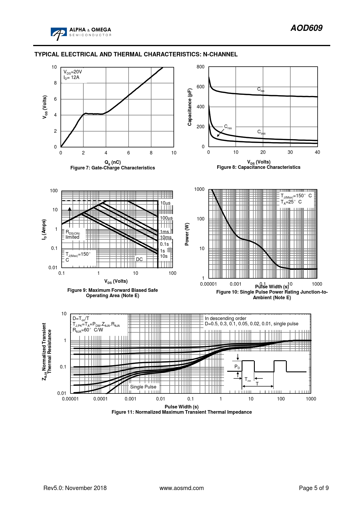| 页数 / 页 | 9 / 5 — AOD609. TYPICAL ELECTRICAL AND THERMAL CHARACTERISTICS: N-CHANNEL. (pF. … |