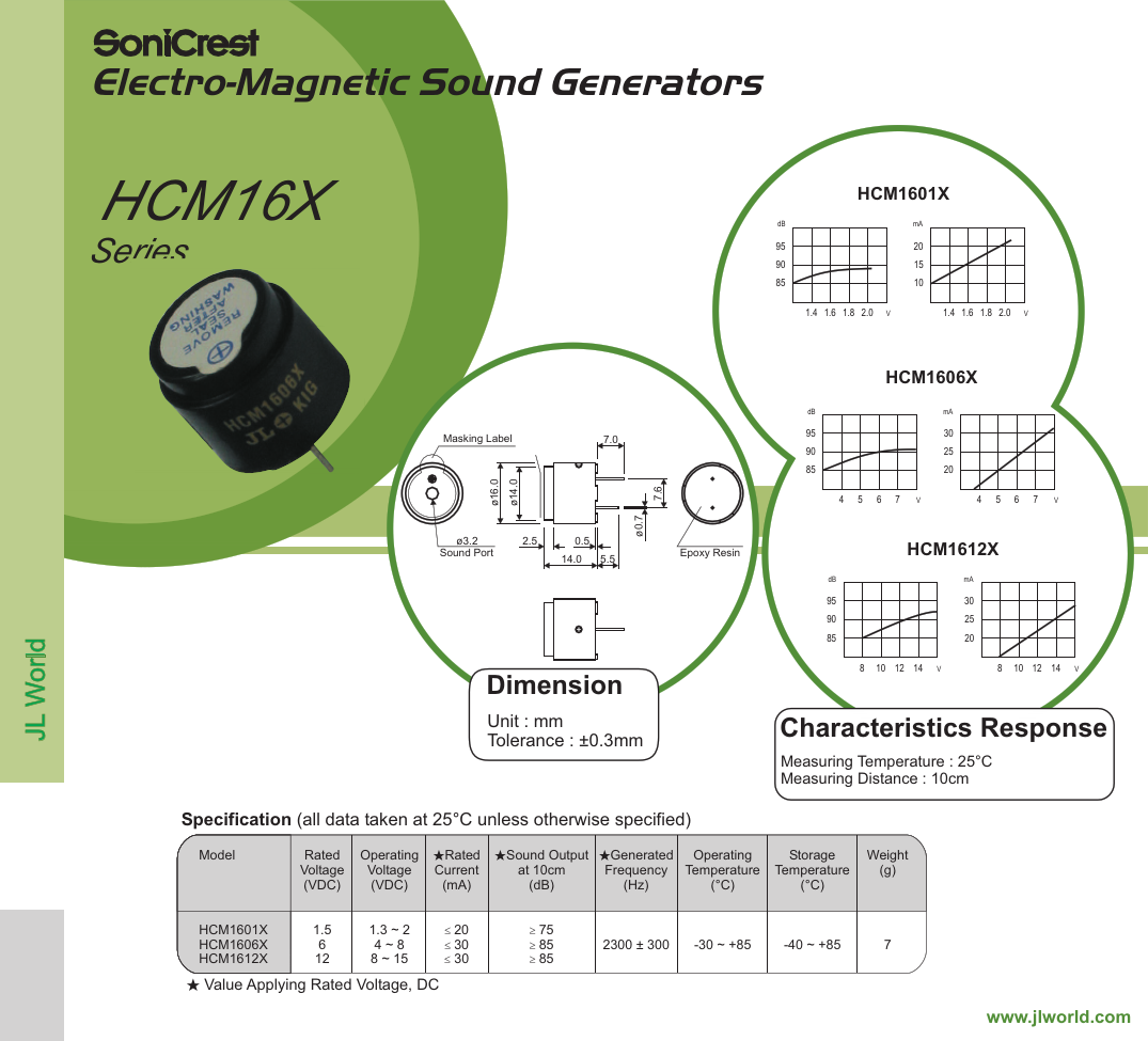 dB mA 95 30 90 25 85 JL World 5 ø0.7 ø16.0
