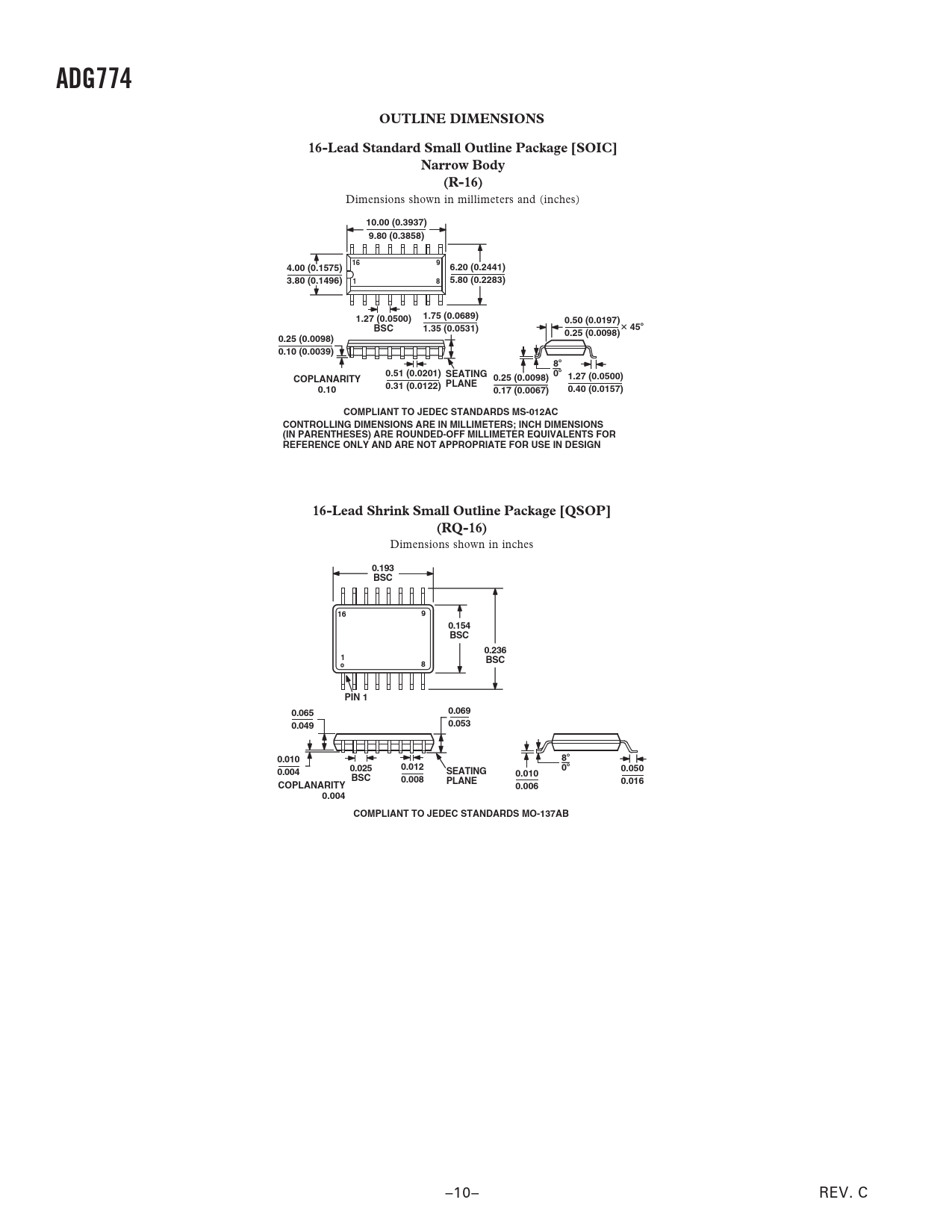 页数 / 页12 / 10 — ADG774. OUTLINE DIMENSIONS. 16-Lead Standard Small Outline Package …