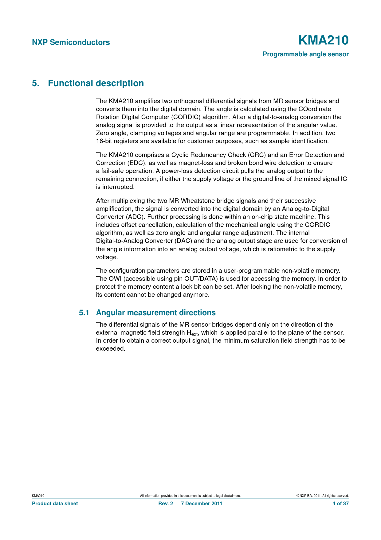 | 页数 / 页 | 37 / 4 — NXP Semiconductors. KMA210. Programmable angle sensor. 5. Functional. … |