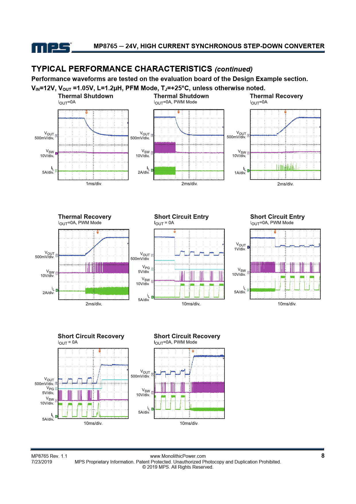 MP8765 ─ 24V, HIGH CURRENT SYNCHRONOUS STEP-DOWN CONVERTER. TYPICAL PERFORMANCE CHARACTERISTICS (continued)