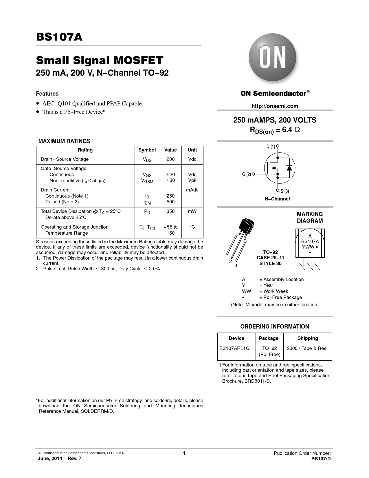 June, 2014 − Rev. 7 BS107/D